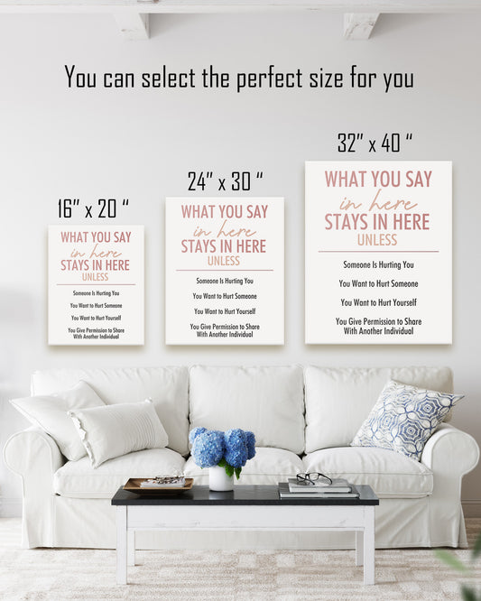 Govivo What You Say In Here Stays In Here - Wall Decor for Therapy Office - Mindfulness Wall Decor - Counseling Office - Mental Health Wall Art - School Psychologist, Therapist