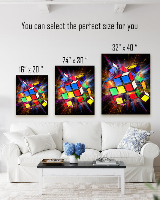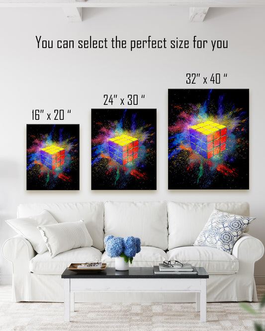 Govivo Rubik's Cube Color Burst - Wall Art Decor Print with a black background - Unframed artwork printed on your choice of photographic paper, poster or canvas