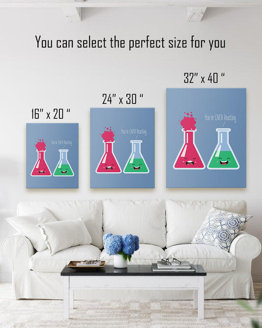 You're OVER Reacting science pun wall decor - Funny chemistry art for middle school classroom - Humorous wall art for teachers