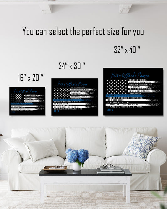 Police Officer's Prayer - Inspirational Police Wall Art Decor Print with a black background artwork canvas