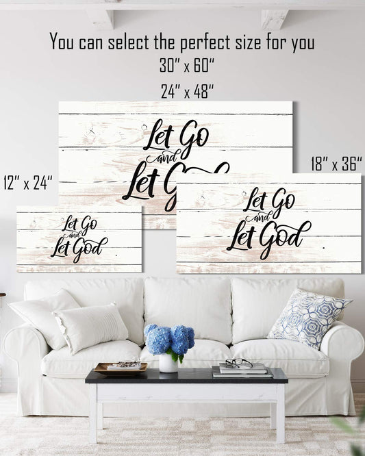 Let Go and Let God - Religious Wall Decor Art Canvas with Woodgrain Background (Not Printed on Wood) - Ready to Hang - Great for above a couch, table, bed or more