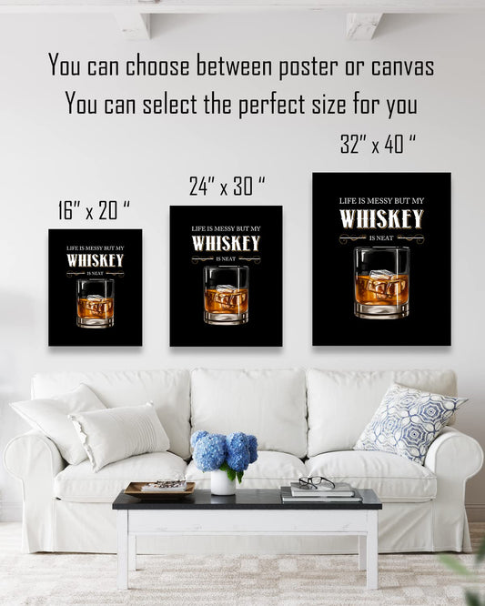 Life Is Messy But My Whiskey Is Neat - Whiskey Drinker Gift - Vintage Bar Prints - Home Bar Wall Decor