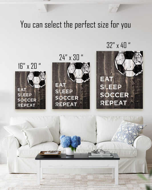 Eat Sleep Soccer Repeat room decor - Sports wall decor for boys and girls - Kids sport bedroom decor - Soccer ball rustic wall art - Thoughtful gift for a coach