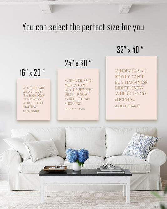 Shopping Lover Quote by Coco Chanel - Fashion Wall Decor for Vanity or Closet - Closet Wall Art - Fashion Design Glamour Wall Art For Women, Teens, Girls