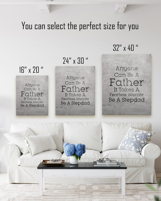 It Takes A Fearless Warrior To Be A Stepdad - Wall Decor Art Print with a gray background