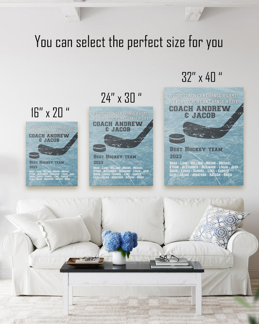 Hockey Coach Appreciation Gift - Customize With Athlete Names, Coach's Names, Team Name, Year or Season - Motivational Sports - Coach's Quote