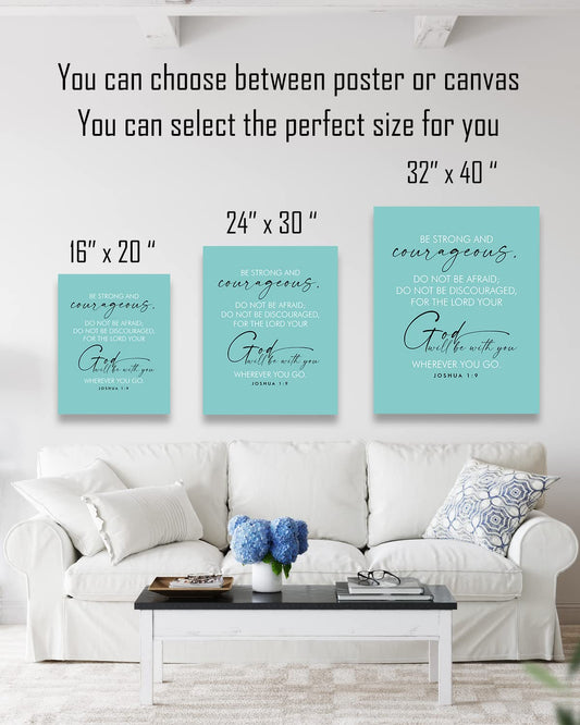 Christian Gifts for Women - Religious Room Decor - Bible Verses Wall Art - Turquoise Blue Spiritual Gifts - Inspirational Quotes - Joshua 1:9 Home Kitchen Bedroom Decor