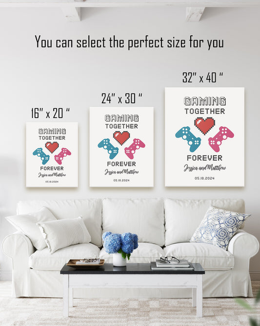 Gaming Together Forever - Customizable Wall Decor Canvas Art for gamers - Great gift for a wedding or anniversary